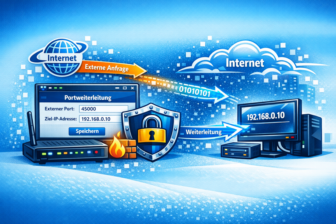 - Externe Anfrage → Router → Weiterleitung an internen PC